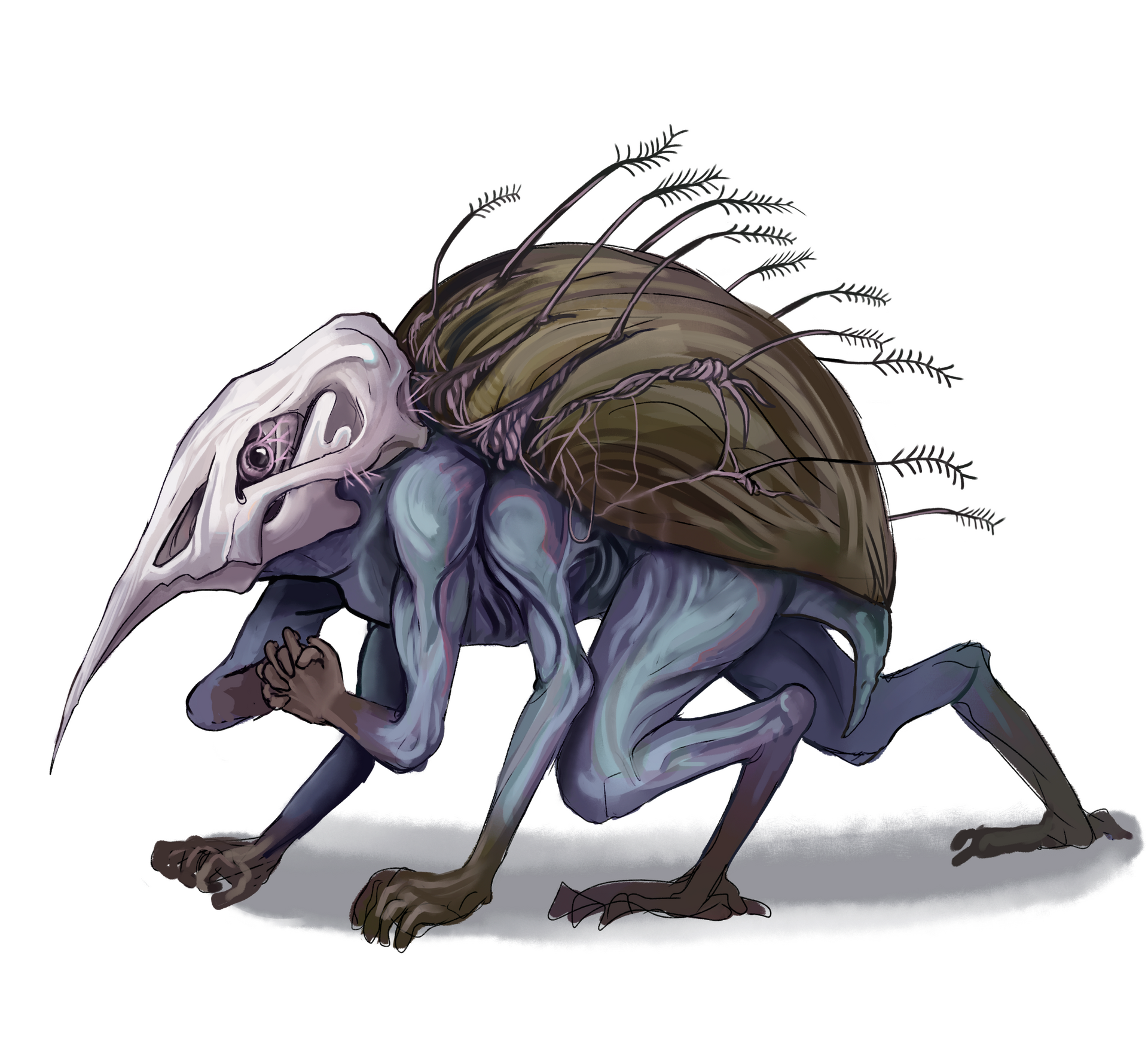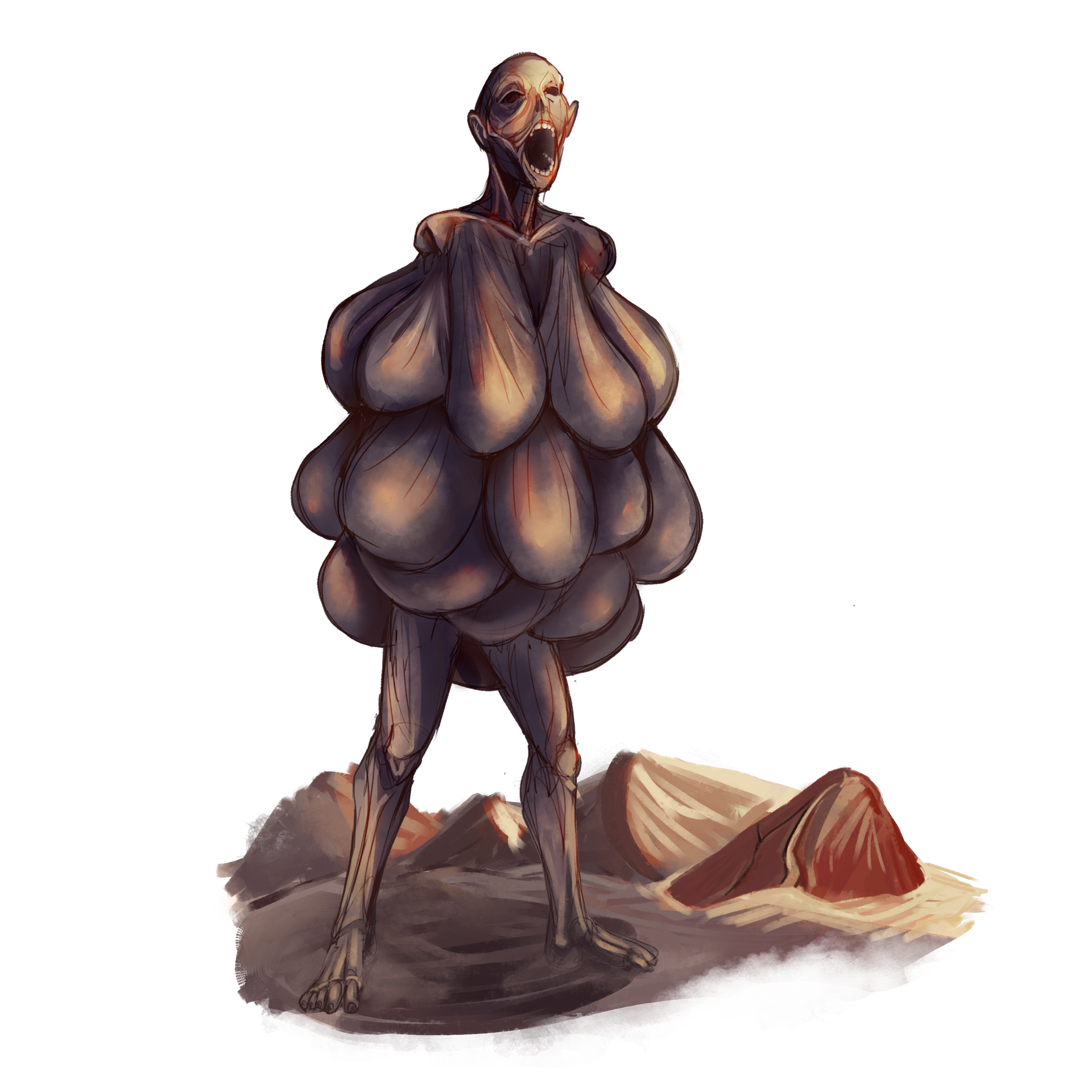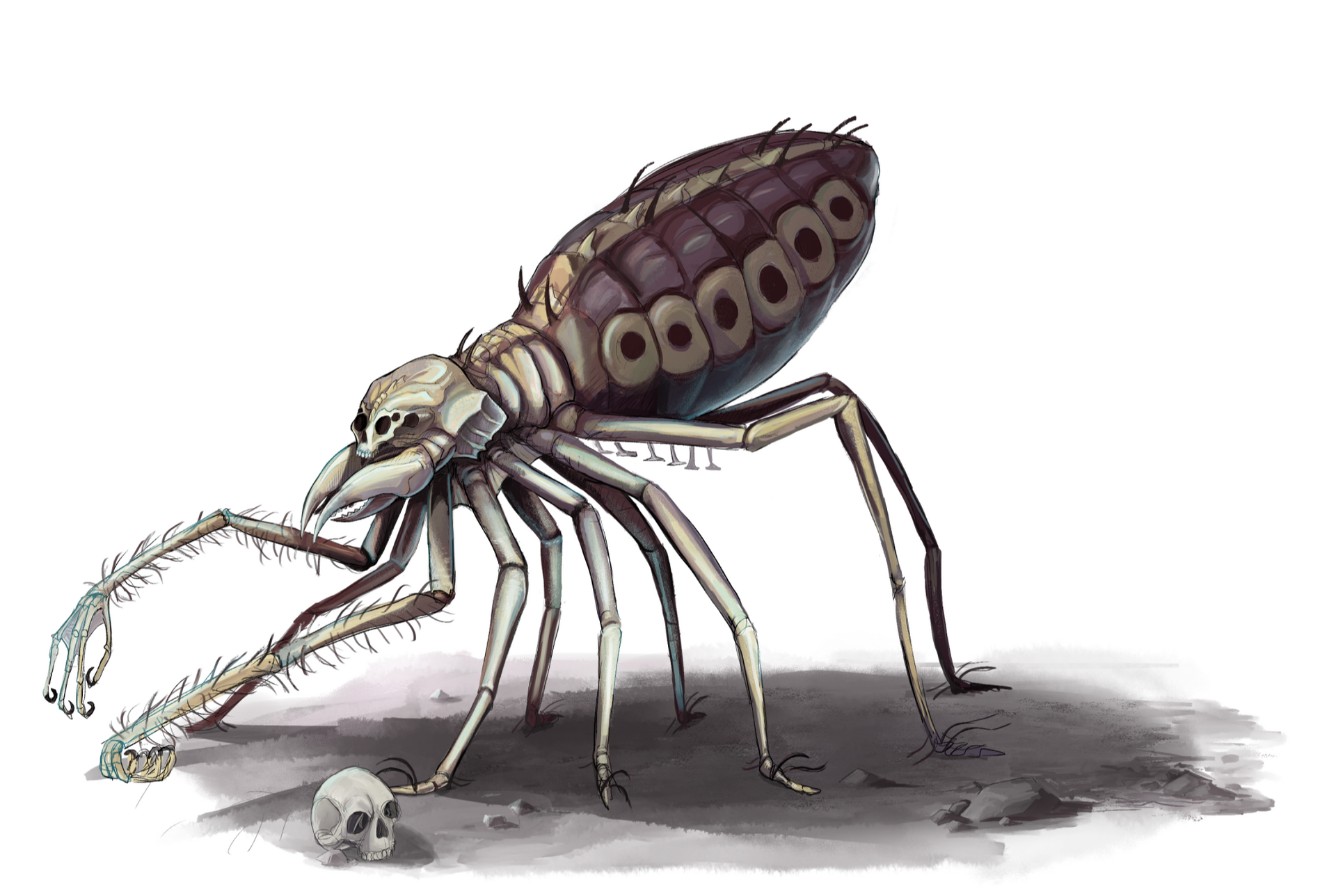 A maioria dos mortos vivos aqui presentes são de um projeto pessoal de RPG intitulado "Eshtiel’s Catalogue of Undead", um catálogo de mortos-vivos para DND 5e.O conceito por trás desse projeto era observá-los a partir de sua anatomia, ver que partes de criaturas diferentes poderiam ser costuradas juntas antes de reanimá-las. Tudo isso sendo descrito e explicado pelo lich que as criou, tentando vendê-las para outros necromantes.Esse projeto, que ainda está em andamento, exigiu que eu montasse as fichas dessas criaturas dentro do sistema, escrevesse sobre elas, produzisse arte, assim como ilustrações menores como se fossem "rascunhos" de seu criador, e diagramasse tudo isso.Por isso, acho interessante ver o resultado completo do trabalho. A seguir, alguns exemplos.