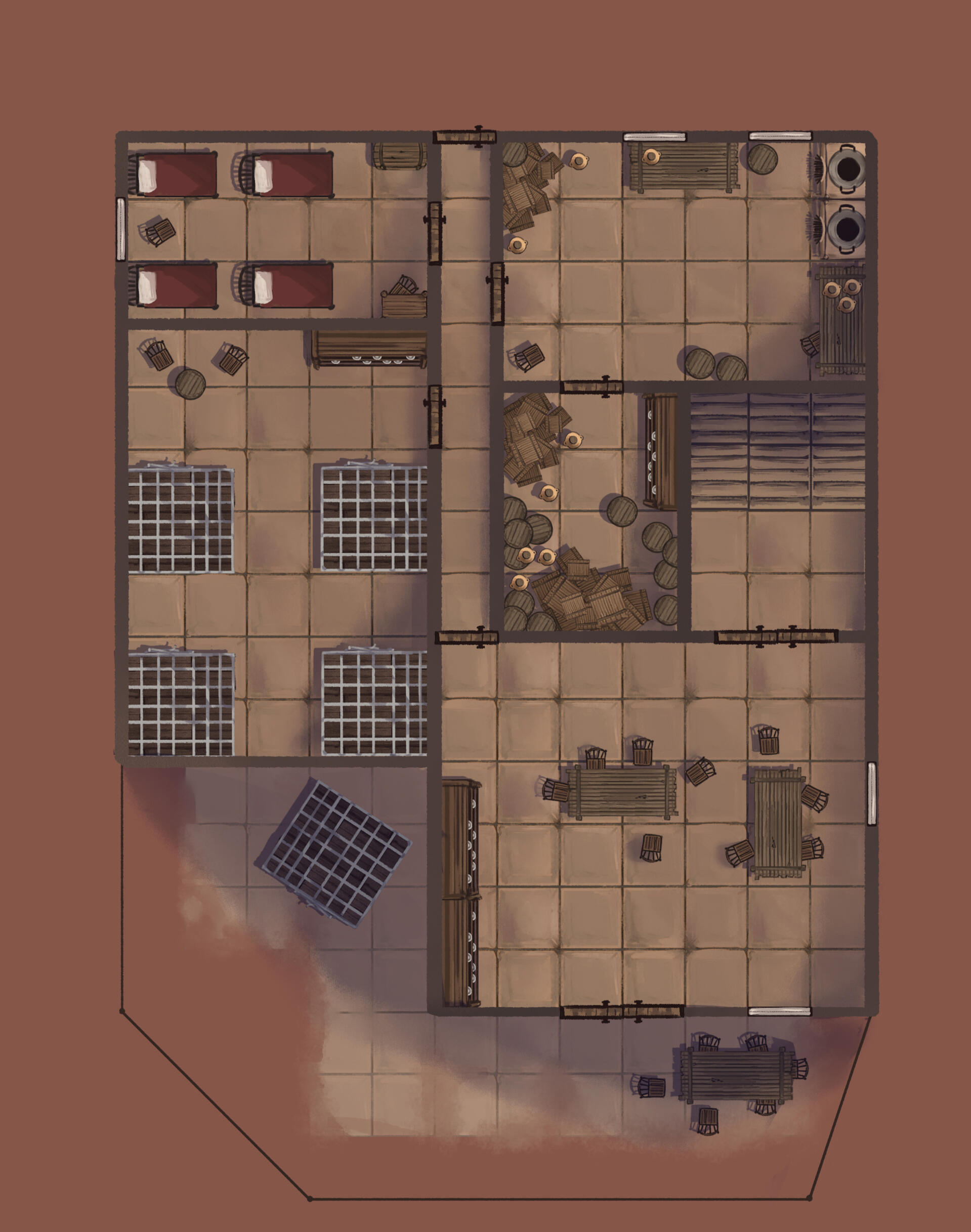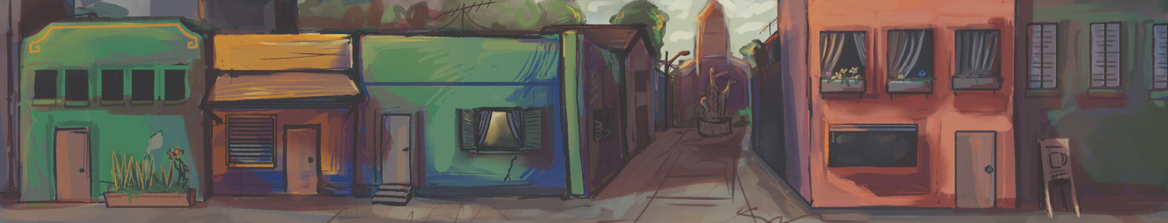 No geral, fazer concept não foi minha função nesse projeto, mas nós acabamos divindindo os personagens um pouco e eu fiz o do Tonhão. Além disso, fiz somente esse (e alguns outros) mock ups de como os assets poderiam ser colocados juntos para ter uma noção de como o jogo final ficaria.